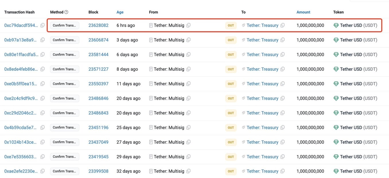 有趣的是,此次资金流出恰逢加密货币市场出现大量资金流入。USDT稳定币的发行方Tether在过去24小时内新增了价值10亿美元的资金。