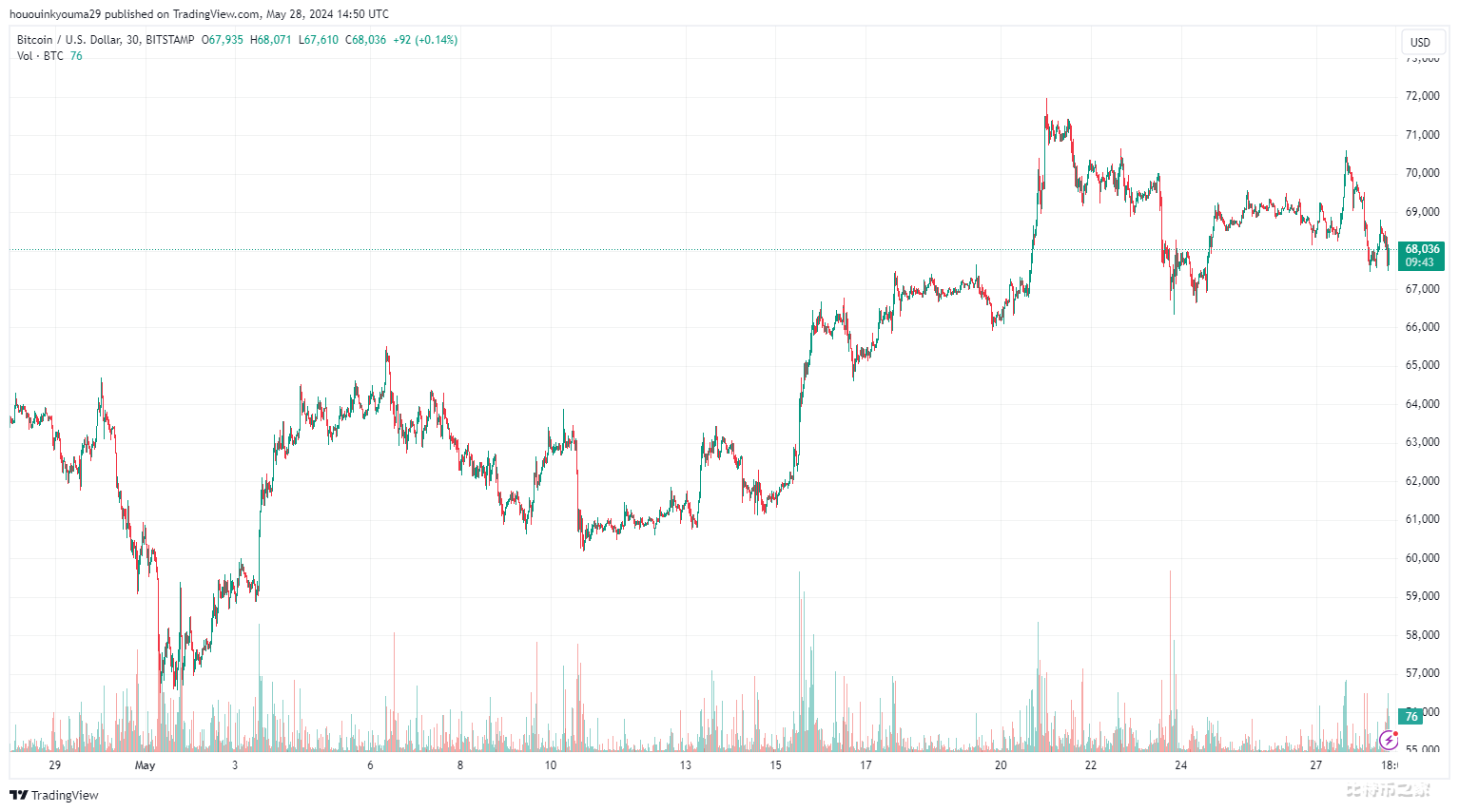 截至目前,比特币的交易价格约为68,000美元,过去一周下跌了超过3%。